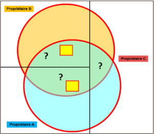 - Le règlement des cas de « superposition d’OLD » : La proximité de deux bâtiments, ou d’un bâtiment d’une route par exemple, entraîne de ce qu’on l’appelle des cas de « superposition d’OLD ». Ici l’enjeu est de savoir à qui incombe la responsabilité légale de la mise en conformité OLD. Des règles complexes et multiples sont ici utilisées : selon le type d’enjeu considéré (localisé ou linéaire) ; selon la proximité aux « limites de parcelles abritant l’enjeu », etc.